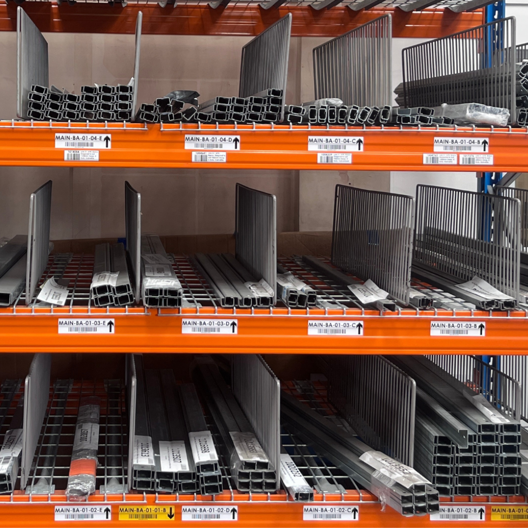 Nene’s Shelf Partitioning System is a fully adjustable stock organisation tool made from powder-coated steel. It fits into standard pallet racking or long-span shelving and allows custom partitioning to suit your exact needs.